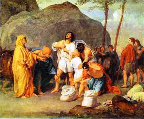 In Genesis chapter 44 we read about Joseph instructing his servant to place his silver cup in Benjamin’s sack. I guess what struck me about all this is that it seemed to me like Joseph was possibly playing mind games with his brothers. Not to say that they didn’t deserve it… but, I wonder if in all of this Joseph had a master game-plan – or if it was simply games he was playing? The weeping we see from him kind of makes me think that he was not 100% sure of what he was doing, game-plan wise. The weeping seemed to indicate that he wanted to reconnect with his brothers and his family. It seems in all of this he has kept at least 1 family member around – or has not let them get very far away. This makes me wonder – do we play mind games with others around us? Should we? Would it have been better if Joseph was honest with his brothers from the beginning on who he was? Would it be better for us if we are simply honest with others from the beginning? And don’t play mind games? Below is a painting from 1831 by Russian painter Alexander Ivanov of Joseph’s household manager finding the silver cup in Benjamin’s sack: