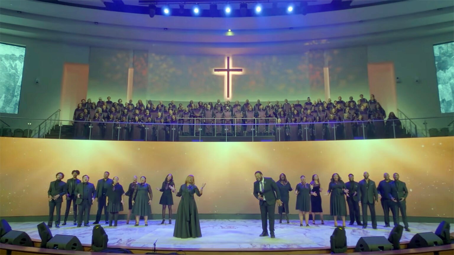 Soloists Beverly Crawford, center left, and Zacardi Cortez, center right, perform “Just Like Selma” with the Wheeler Avenue Baptist Church Mass Choir at Wheeler Avenue Baptist Church in Houston. (Video screen grab courtesy of NEWorks Productions)