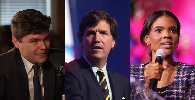 Photo Credit: Screenshot/Tucker Carlson via YouTube, Gage Skidmore from Surprise, AZ, United States of America – Candace Owens, CC BY-SA 2.0, Wikimedia, and Gage Skidmore from Surprise, AZ, United States of America – Tucker Carlson, CC BY-SA 2.0, Wikimedia.