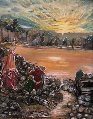 Today in Leviticus chapter 25 we finish up reading about the Year of Jubilee. I don’t know what it is about the Year of Jubilee, but for some reason I really like the concept of it! I actually read a commentary that said there is no evidence that the Year of Jubilee was actually ever carried out, which made me a bit sad. However, that same commentary suggested that the Year of Jubilee was ultimately fulfilled through the life of Jesus, as Jesus himself quotes this very Year-of-Jubilee-ic 🙂 sounding verse from Isaiah in Luke chapter 4 verses 18-21: ““The Spirit of the Lord is on me, because he has anointed me to preach good news to the poor. He has sent me to proclaim freedom for the prisoners and recovery of sight for the blind, to release the oppressed, to proclaim the year of the Lord’s favor.” Then Jesus rolled up the scroll, gave it back to the attendant and sat down. The eyes of everyone in the synagogue were fastened on him, and he began by saying to them, “Today this scripture is fulfilled in your hearing.”” Whaddya think? Think the concept of the Year of Jubilee was indeed fulfilled in the life of Jesus? I do. And we don’t need to count down 50 years from now until the next Year of Jubilee. The Year of Jubilee is available to each of one of us today! I came across this beautiful piece of artwork below called “Year of Jubilee” – see anything in this artwork that might be pointing toward Jesus?