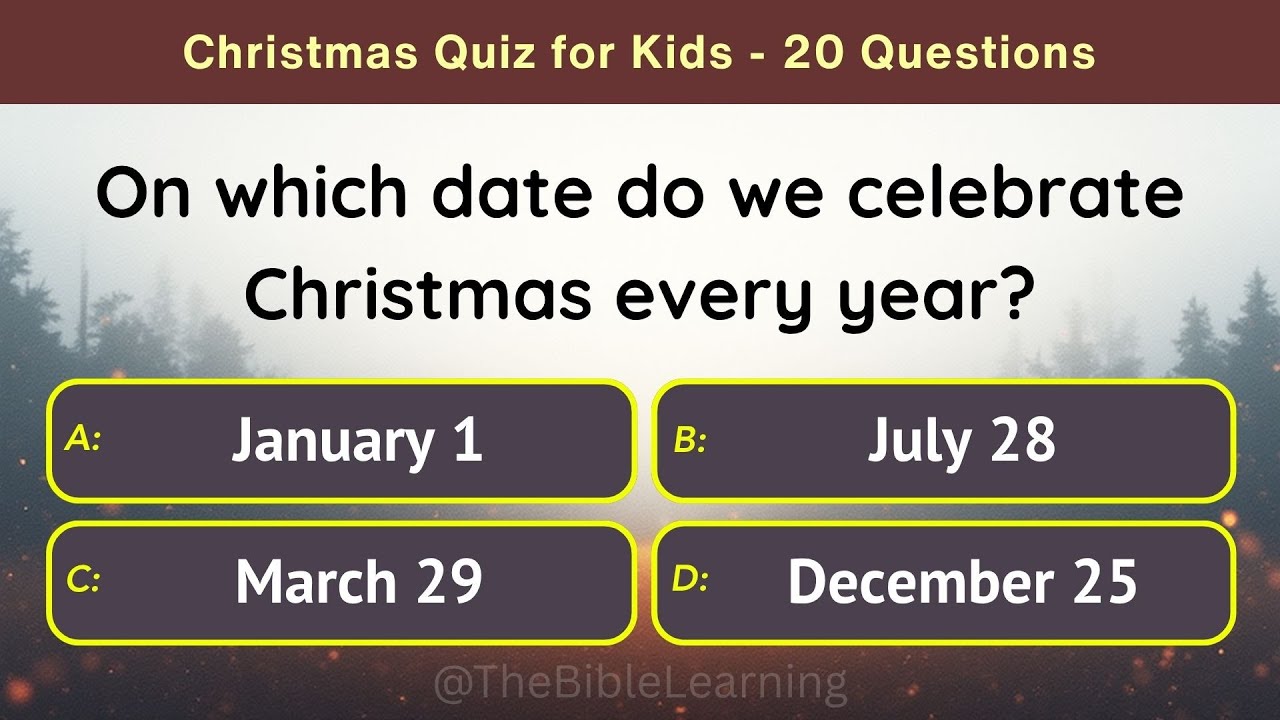 Celebrate the joy of Christmas with this fun Bible quiz for kids! Featuring 20 engaging multiple-choice questions, this quiz focuses on the story of Jesus’ birth, the angels, shepherds, wise men, and the nativity. Perfect for Sunday school, Bible study, or family gatherings during the holiday season. Test your knowledge and learn more about the true meaning of Christmas in a playful way!