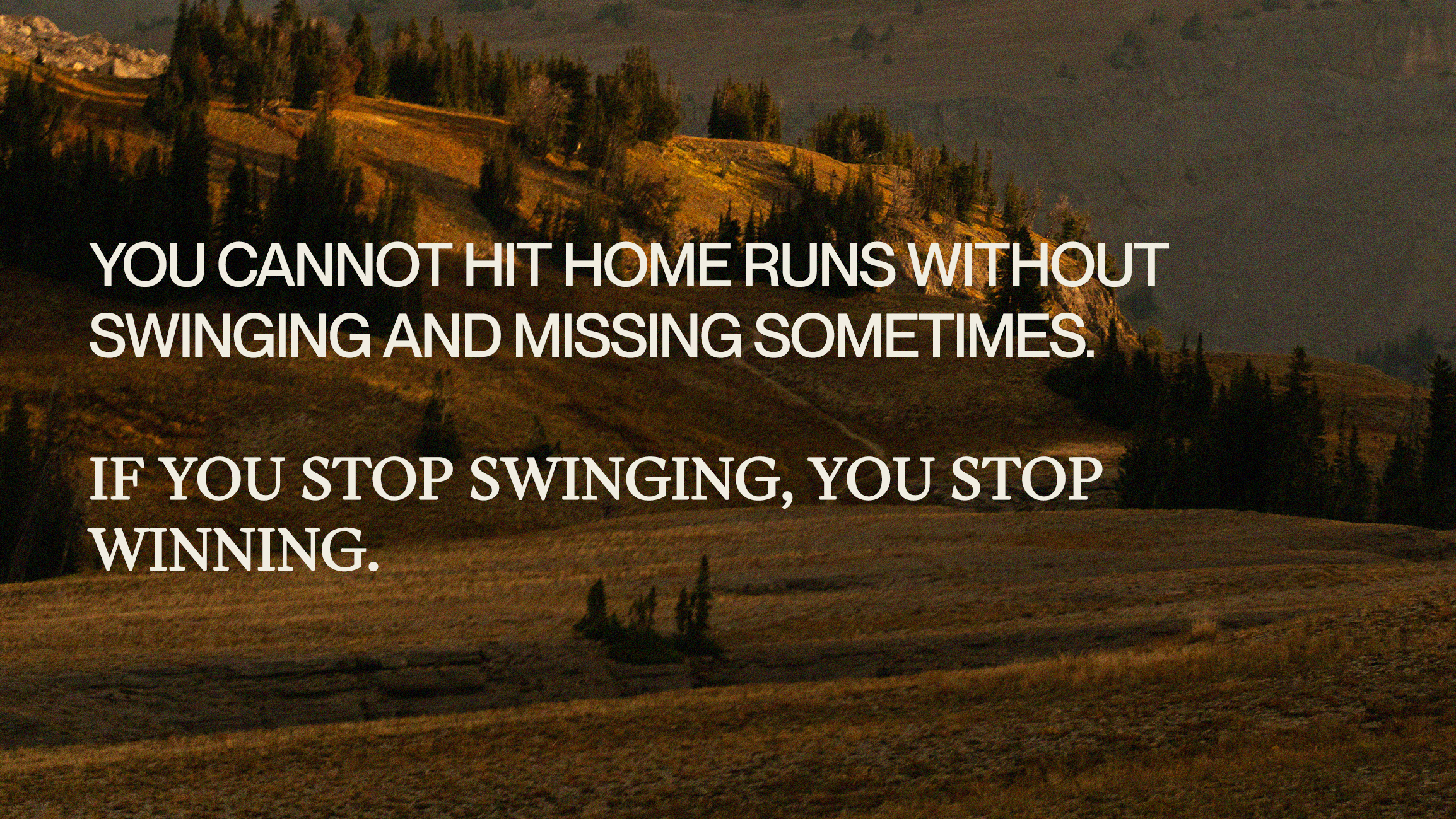 You cannot hit home runs without swinging and missing sometimes. If you stop swinging, you stop winning.